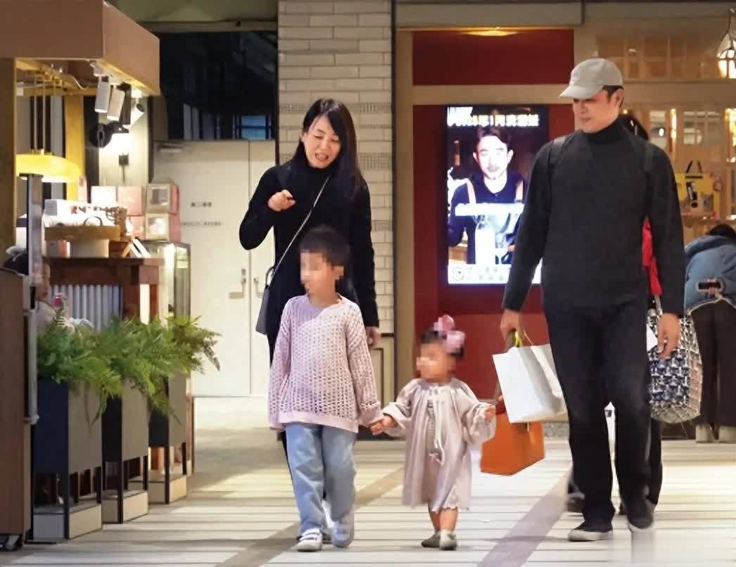 明道一家四口开心逛街,妻子正脸曝光肤白貌美,一双儿女牵手领路